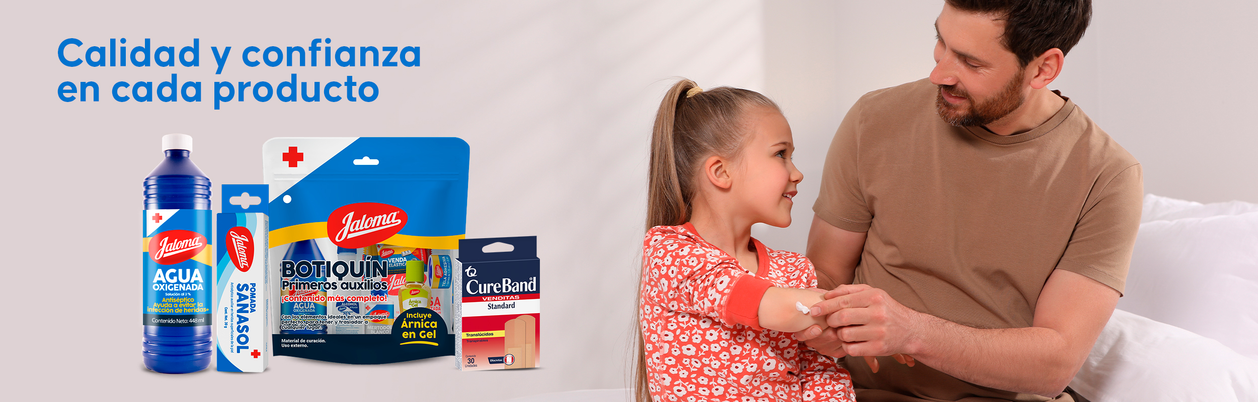 En Jaloma, con más de 85 años de experiencia y un corazón 100% mexicano, nos dedicamos con compromiso y responsabilidad a ofrecer soluciones confiables en material de curación. Nuestros productos, como antisépticos, apósitos, botiquines, entre otros, están diseñados con los más altos estándares de calidad, brindando la seguridad y eficacia que las familias merecen.